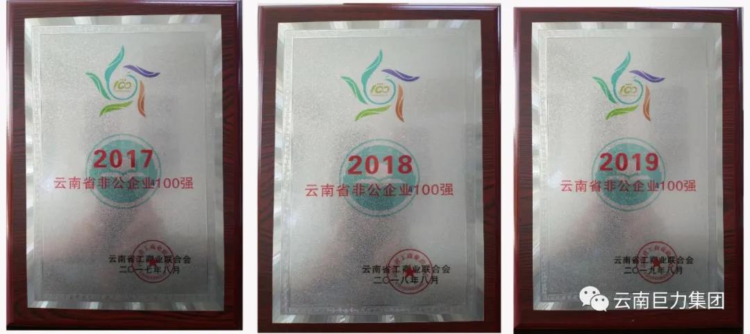 云南巨力集團從2017年至2020年,連續(xù)4年蟬聯(lián)榮列“云南省非公企業(yè) 100 強”。