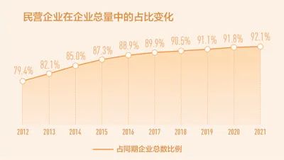 記者近日從國家市場監(jiān)督管理總局獲悉:2012—2021年,我國民營企業(yè)數(shù)量從1085.7萬戶增長到4457.5萬戶,10年間翻了兩番,民營企業(yè)在企業(yè)總量中的占比由79.4%提高到92.1%,在穩(wěn)定增長、促進(jìn)創(chuàng)新、增加就業(yè)、改善民生等方面發(fā)揮了重要作用,成為推動(dòng)經(jīng)濟(jì)社會(huì)發(fā)展的重要力量。