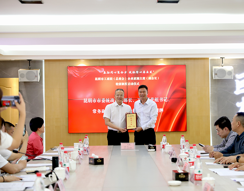 2023年9月22日,昆明市工商聯(總商會)企業(yè)家副主席(副會長)輪值制度在云南巨力集團舉行。昆明市委統(tǒng)戰(zhàn)部副部長、市工商聯黨組書記李富貴為王國新、張艷萍、楊志云三位首任輪值副主席授牌并講話。