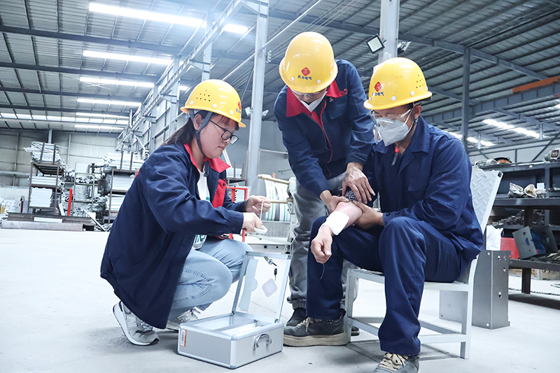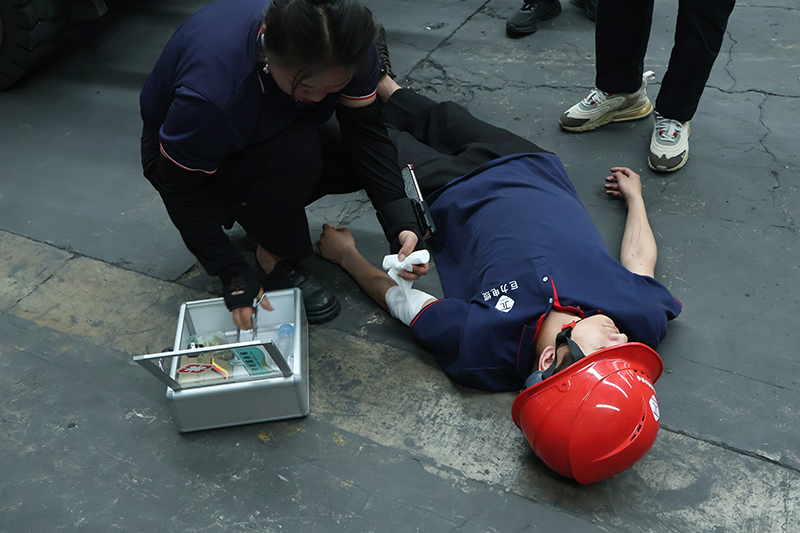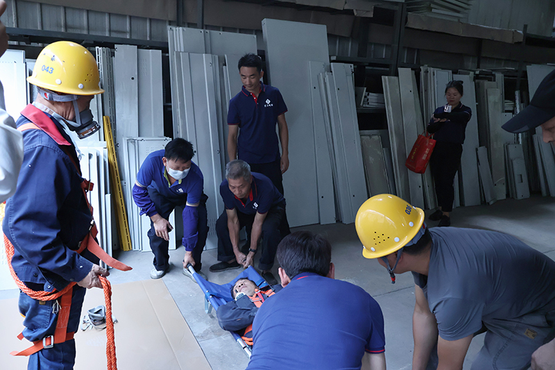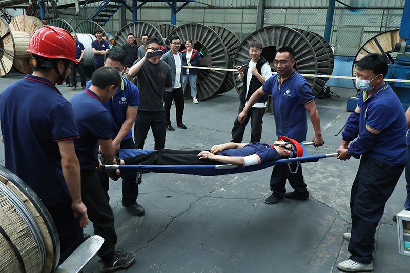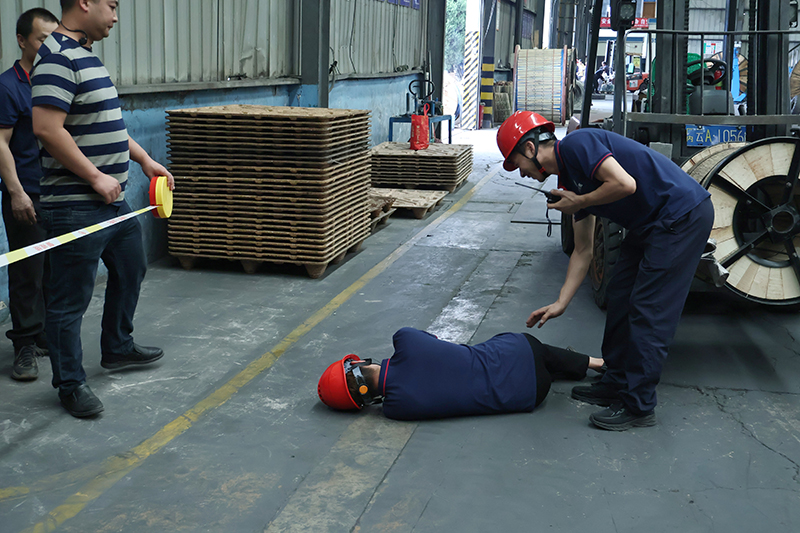 在13:00至14:20期間,巨力電纜和巨力電氣生產一線員工參與了包括灼燙傷、有限空間作業(yè)事故、電梯人員被困、叉車事故以及危廢泄漏事故的應急救援演練。這些演練在巨力電氣車間和巨力電纜車間進行,通過真實場景模擬突發(fā)生產事故應急救援,確保了一線員工對各類突發(fā)事件的應對能力。