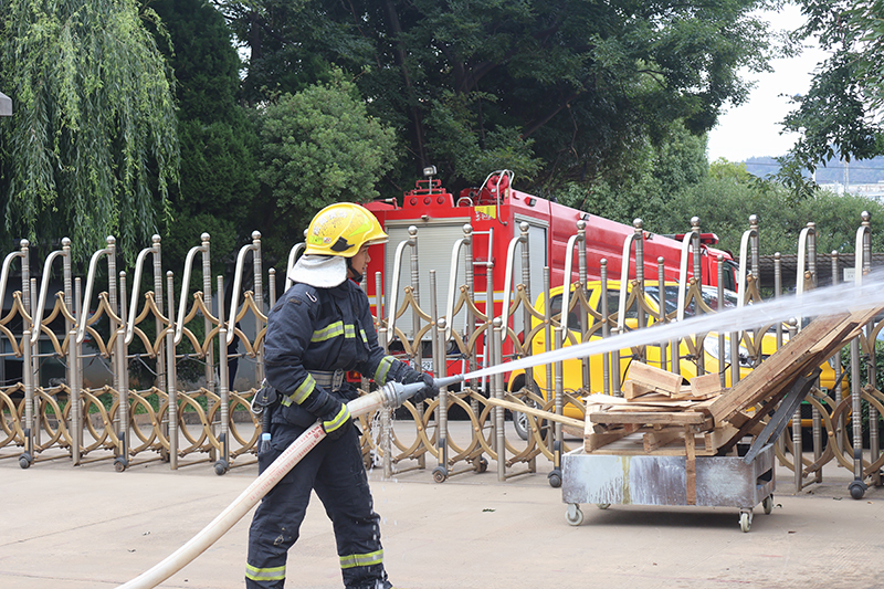 15:00至16:40,全體員工參與了宿舍火災逃生、滅火器和室內消火栓使用的實操演練。在宿舍火災逃生演練前,昆明經開區(qū)消防救援大隊春漫路消防站副站長羅卓才對演練流程進行專業(yè)指導,并帶領四名專業(yè)消防滅火戰(zhàn)斗員參與了實戰(zhàn)演練。在隨后的滅火器實操演練中,羅副站長率領專業(yè)消防員親自上場講解,并對滅火器的正確使用作了示范。