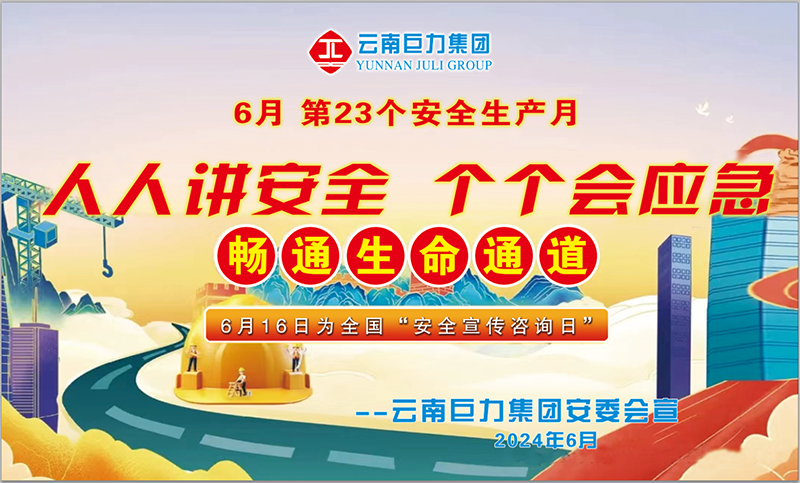 今年6月是全國第23個“安全宣傳月”,今年的宣傳主題是“人人講安全,個個會應急,暢通生命通道”,從6月1日開始,云南巨力集團安委會就緊緊圍繞主題,通過標語、滾動電子屏、短視頻、公眾號等開展了一系列宣傳活動。