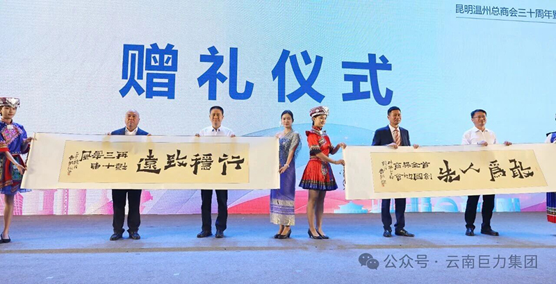溫州市全國(guó)溫州商會(huì)向昆明溫州總商會(huì)贈(zèng)送紀(jì)念牌匾及書法作品,昆明市總商會(huì)也向昆明市工商聯(lián)贈(zèng)送書法作品,彰顯了溫商群體深厚的文化底蘊(yùn)和家國(guó)情懷。