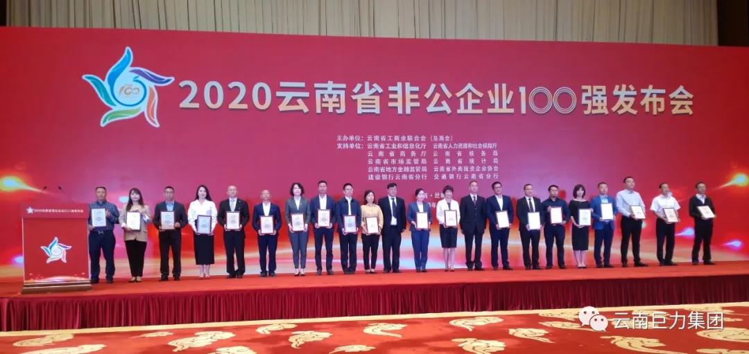 2020年“云南非公企業(yè)100強(qiáng)”發(fā)布,云南巨力集團(tuán)連續(xù)4年榮列“云南省非公企業(yè) 100 強(qiáng)”