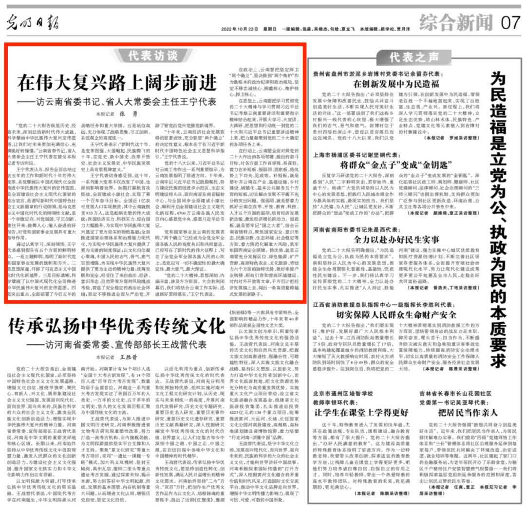 在偉大復(fù)興路上闊步前進(jìn)!《光明日?qǐng)?bào)》專訪云南省委書記、省人大常委會(huì)主任王寧